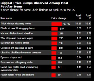 Shein上调美国商品售价迎战关税冲击 部分品类涨幅高达377%