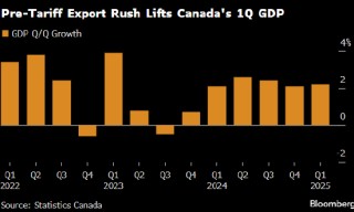 关税驱动的出口强劲上升推动了加拿大今年年初的经济增长,抵消了国内经济其他领域的疲软。 加拿大统计局周五表示,国内生产总值(GDP)折合年率增长2.2%,增幅略高于去年年底的2.1%。这一增长幅度甚至超过了彭博调查中最...