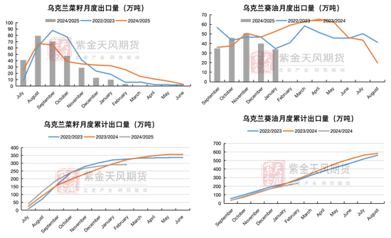 澳大利亚菜籽出口高峰即将过去,乌克兰菜籽出口处于尾端。欧盟菜籽菜油进口和出口都在减少。