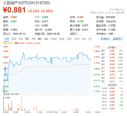 风险提示:大数据产业ETF(516700)被动跟踪中证大数据产业指数,该指数基日为2012.12.31,发布于2016.10.18,该指数近5年分年度涨跌幅为:2020年,3.57%;2021年,-3.5%;2022年,-25.68%;2023年,1.4%;2024年,10.57%,指数成份股构成根据该指数编制规则适时调整,其回测历史业绩不预示指数未来表现。本文中提及的指数成份股仅作展示,个股描述不作为任何形式的投资建议,也不代表管理人旗下任何基金的持仓信息和交易动向。基金管理人评估的该基金风险等级为R3-中风险,适宜平衡型(C3)及以上的投资者,适当性匹配意见请以销售机构为准。任何在本文出现的信息(包括但不限于个股、评论、预测、图表、指标、理论、任何形式的表述等)均只作为参考,投资人须对任何自主决定的投资行为负责。另,本文中的任何观点、分析及预测不构成对阅读者任何形式的投资建议,亦不对因使用本文内容所引发的直接或间接损失负任何责任。基金投资有风险,基金的过往业绩并不代表其未来表现,基金管理人管理的其他基金的业绩并不构成基金业绩表现的保证,基金投资须谨慎。