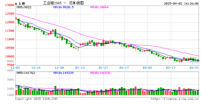 截止2日收盘,工业硅期货市场则呈现缩量震荡。主力合约2505收9760元/吨,下跌20元,涨幅0.20%。盘中最高9870元/吨,最低9725元/吨,振幅1.48%,日减仓17564手。