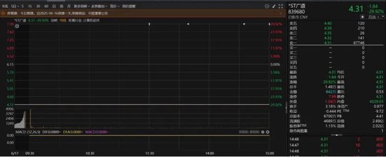 今日,*ST广道复牌交易,但股价全天一字跌停,收跌29.92%报4.31元/股。这是一家北交所上市企业,于2021年11月15日在北交所上市,首发价格为12.25元/股,承销保荐机构为五矿证券。